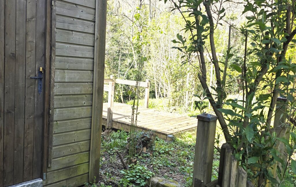 À l’extérieur, vous profiterez d’une agréable terrasse pavée pour les soirées d’été, ainsi que d’un jardin avec son cabanon en bois et sa terrasse en bord de rivière, avec de petites cascades. Un véritable plus : idéale pour se rafraîchir et se détendre en toute tranquillité à la belle saison.