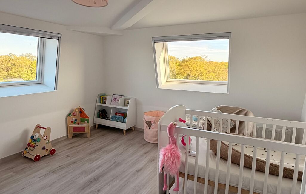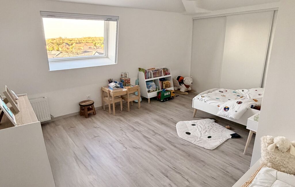 À l’étage, deux chambres supplémentaires, une salle de bain avec WC et un dégagement permettent une organisation idéale pour une vie de famille.