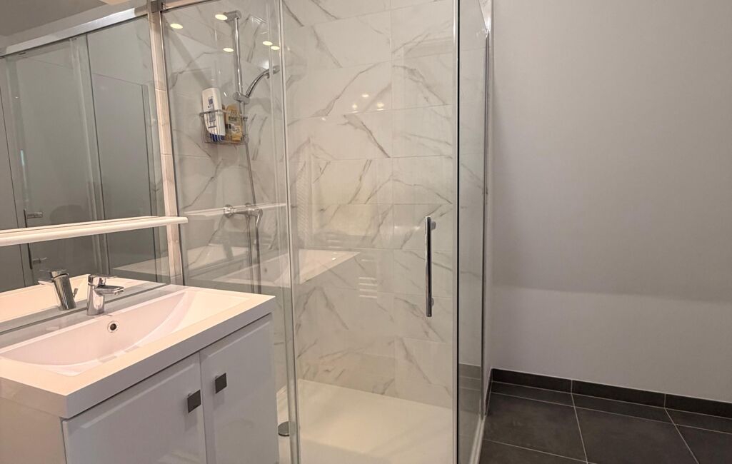Une chambre, une salle d’eau, des WC séparés et plusieurs rangements complètent cet espace.