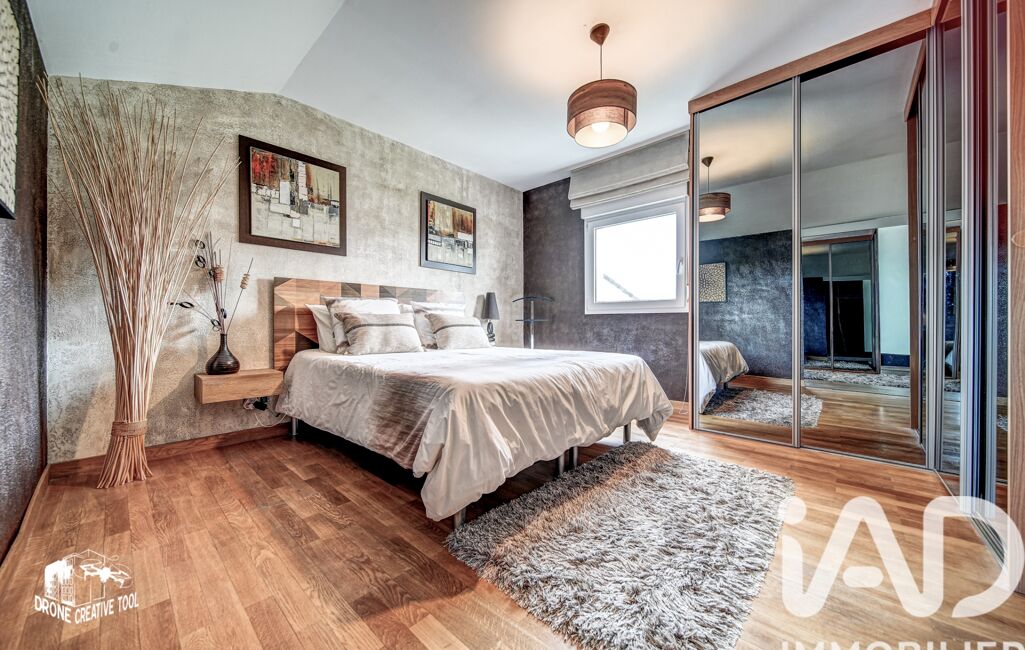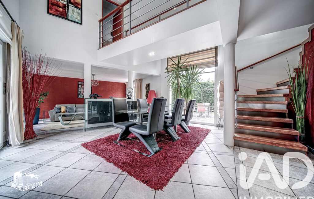 À l’étage, une élégante passerelle dessert une mezzanine faisant office de bureau, une chambre parentale avec salle d’eau privative, une chambre avec dressing, une troisième chambre avec rangements intégrés, un toilette indépendant, un espace de rangement en sous-pente ainsi qu’une grande salle de bains familiale. Chaque espace est intelligemment optimisé pour un confort de vie optimal.