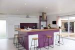 - Une cuisine ouverte moderne avec îlot central, ouverte sur salle à manger et salon