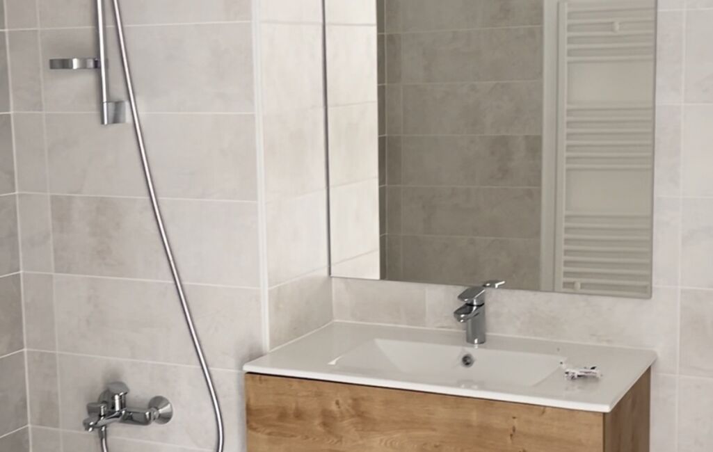 L'appartement dispose de 2 chambres confortables, d'une salle de bain moderne et d'un WC séparé suspendu, répondant ainsi à toutes les exigences de confort et d'intimité.