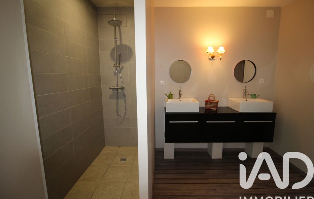 Au 1er étage : 2 chambres dont une avec un dressing, une salle d’eau avec sa douche et son meuble double vasque, des WC indépendants.