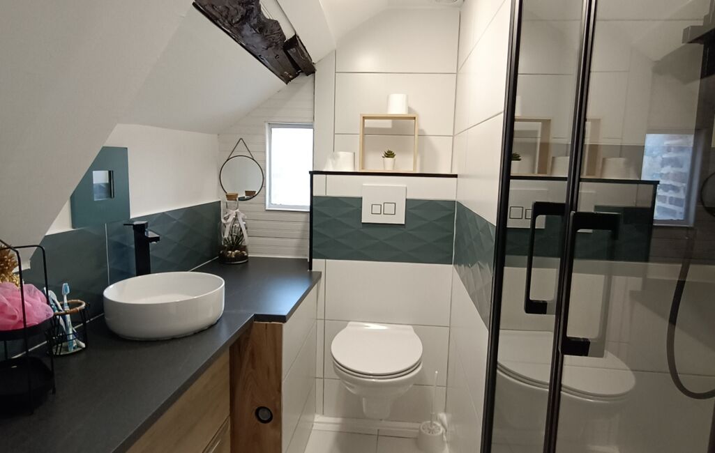 Au 2ème étage, une chambre, un bureau ou chambre d'appoint, une salle de douche récente avec wc suspendu.