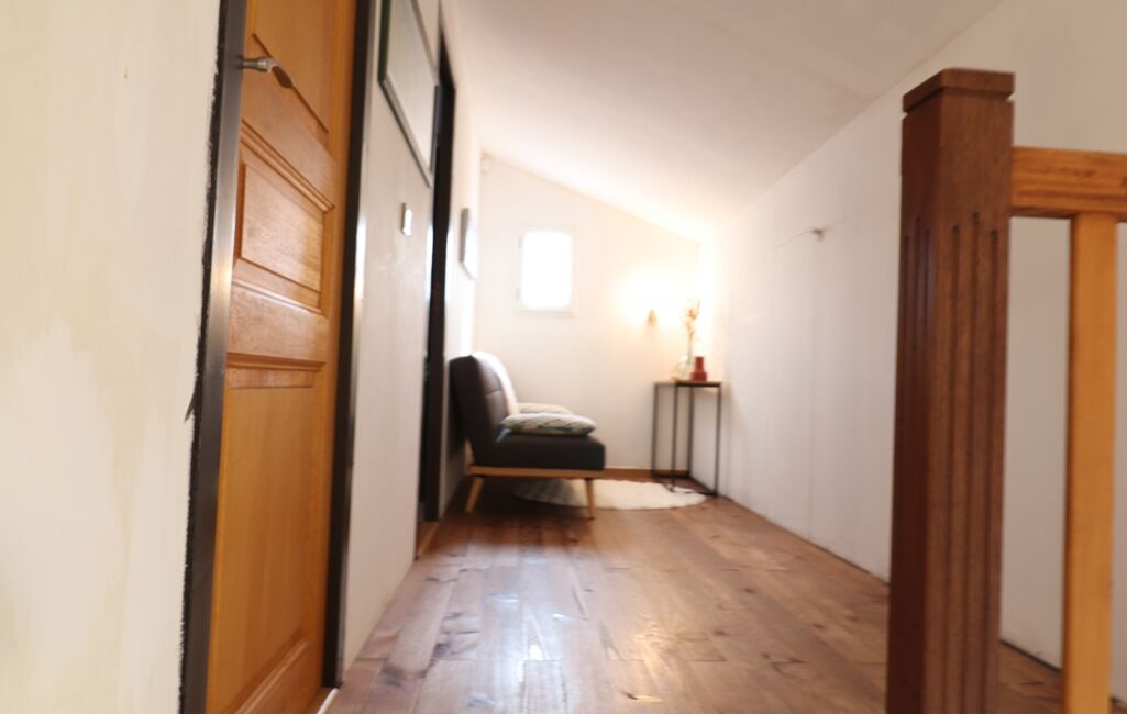 Un escalier en bois monte à l'étage de 34 m² comprenant une mezzanine et 2 chambres mansardées avec placard de 11.50 m² et celle de 13 m² possède sa petite salle d'eau .