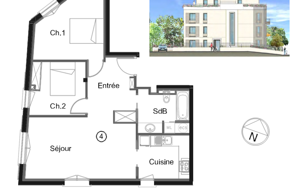 - Nbre. de chambres : 2