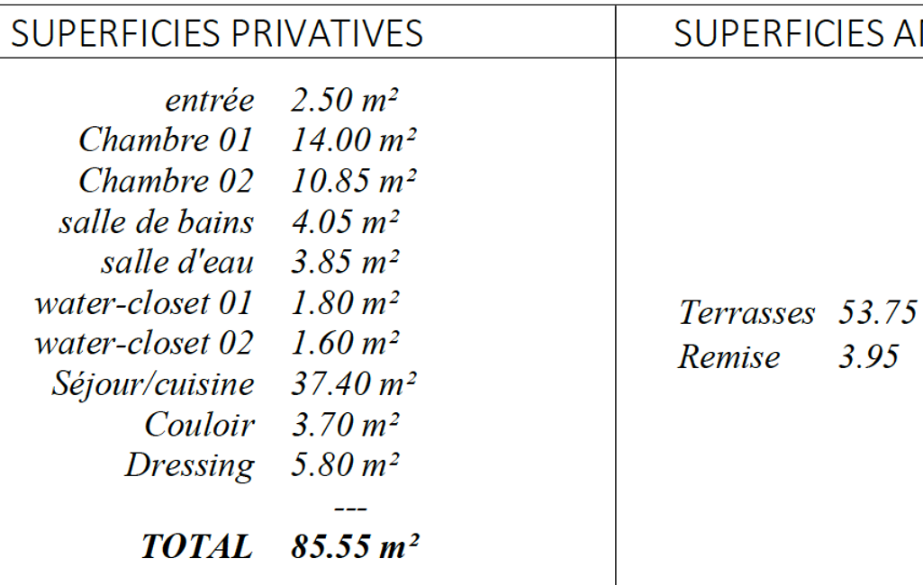 - Surface habitable : 85 m²