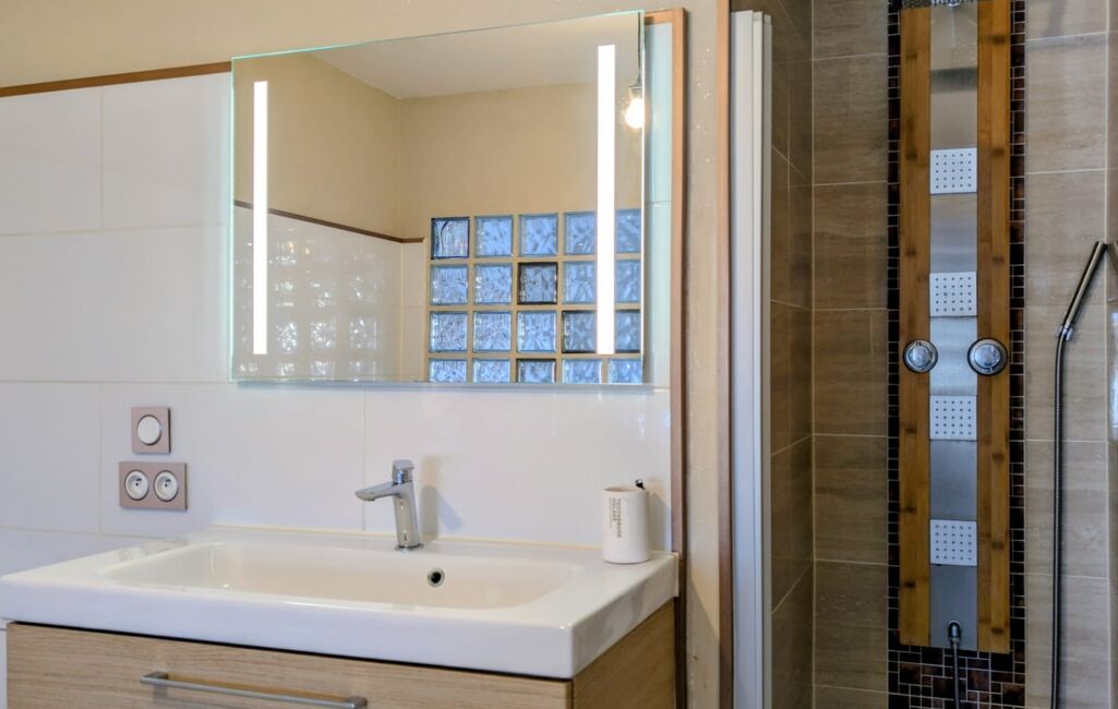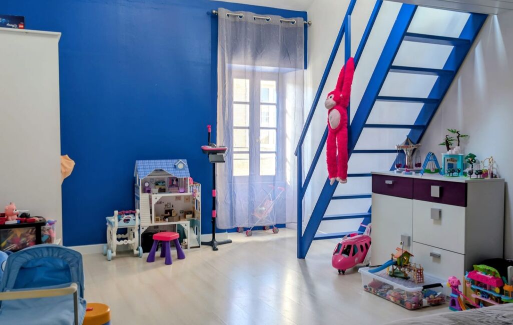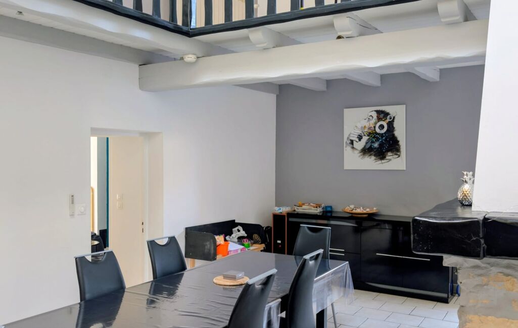 Sur 152m², elle a su conserver tout son cachet d'antan tout en bénéficiant d'une rénovation récente. Au rez-de-chaussée, vous découvrirez un salon / séjour spacieux avec insert, une salle à manger conviviale et lumineuse avec une hauteur sous plafond de 6m, munis d'un poêle à granulés, une cuisine équipée et une salle d'eau. La mezzanine fait le lien avec l'étage et offre un espace polyvalent qui dessert les trois chambres, dont la chambre parentale avec douche, baignoire d'angle et WC.