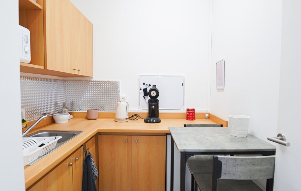 Il se compose de trois bureaux indépendants, dont un espace de plus de 25 m² pouvant aisément servir de salle de réunion ou d’espace de travail collaboratif. Le bien comprend également une kitchenette, un sanitaire conforme aux normes PMR, un local de rangement, une salle d'attente ainsi que deux accès distincts rendant l’ensemble traversant et particulièrement lumineux (orientation Nord/Sud).