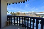 Un balcon offre une vue splendide sur le majestueux Mont-Charvin et la chaîne des Aravis. Un cadre idyllique pour partager un moment convivial en terrasse, face au coucher du soleil.
