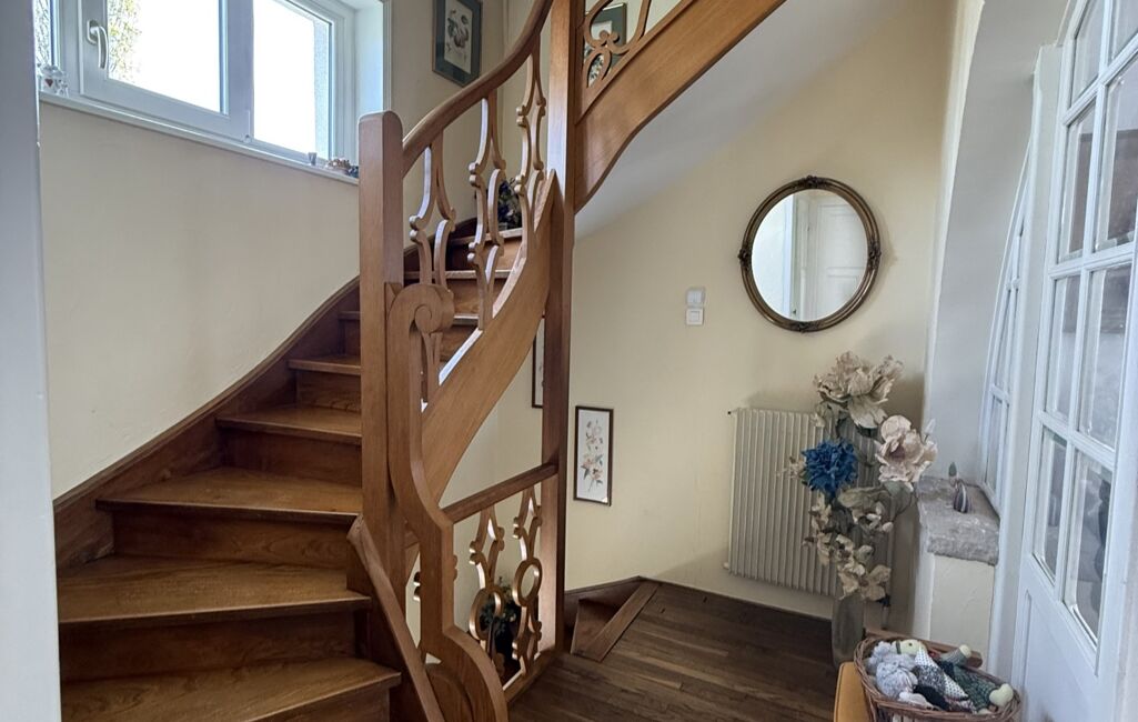 Un bel escalier mène ensuite à l’espace de vie principal. Vous y découvrirez une vaste pièce de vie lumineuse et chaleureuse, baignée de lumière grâce à ses nombreuses ouvertures. La cuisine aménagée, fonctionnelle , dispose d’un agréable petit balcon offrant une vue exceptionnelle sur le jardin et les extérieurs.