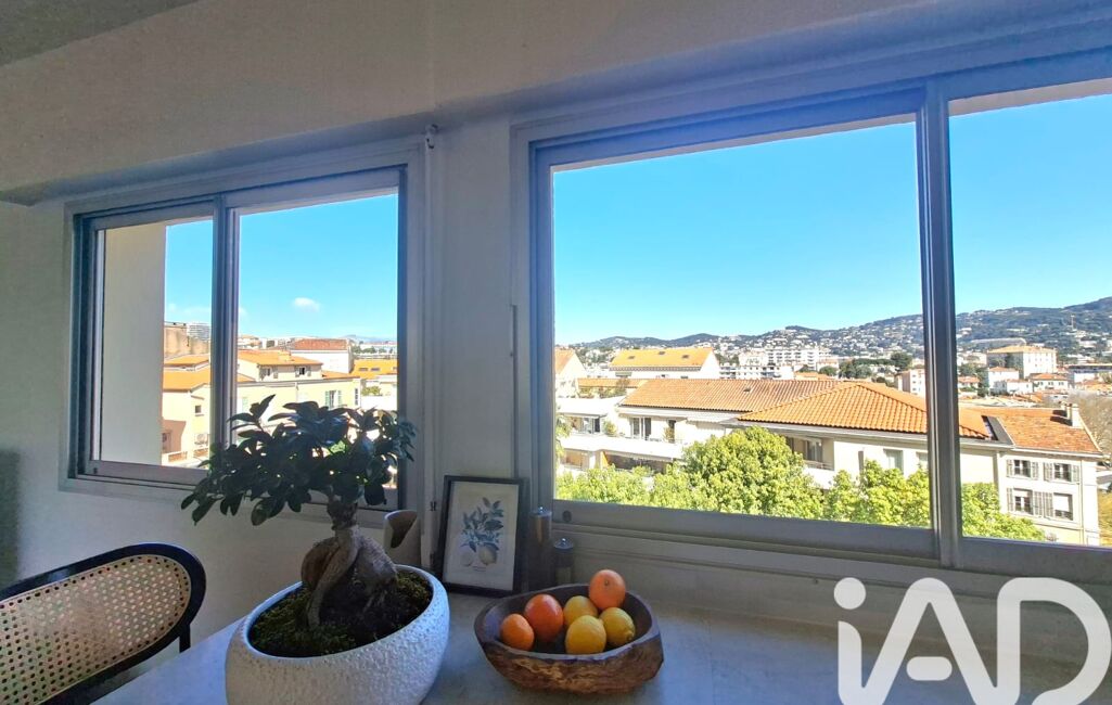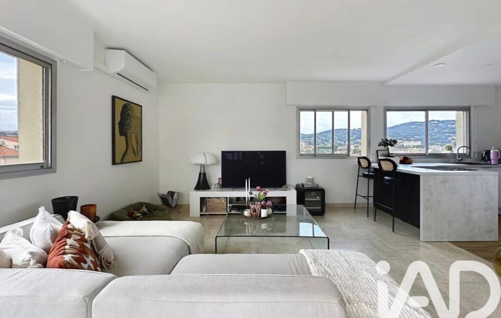 A square terrace extends the living space, offering open views over the rooftops of Cannes and the surrounding hills, with no direct overlooking.