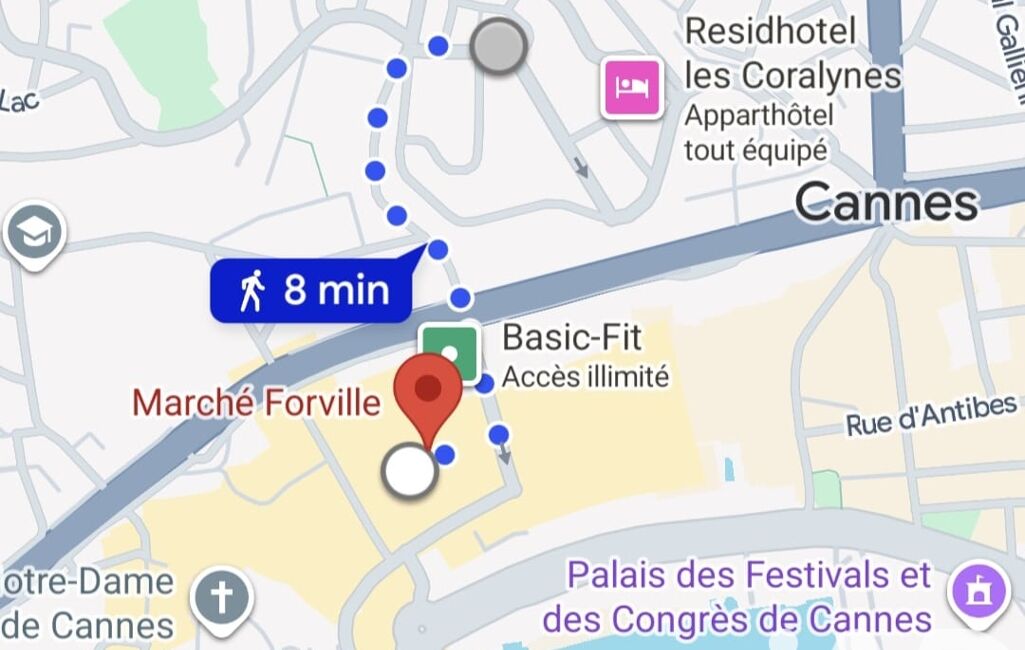 Дворец фестивалей, пляжи и вокзал — около 14 минут