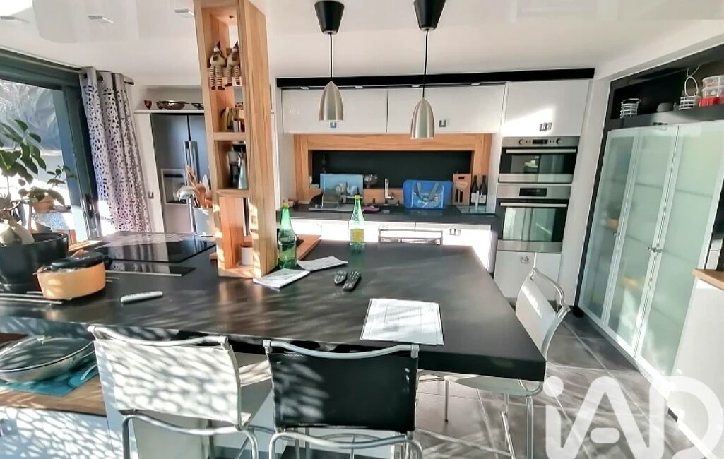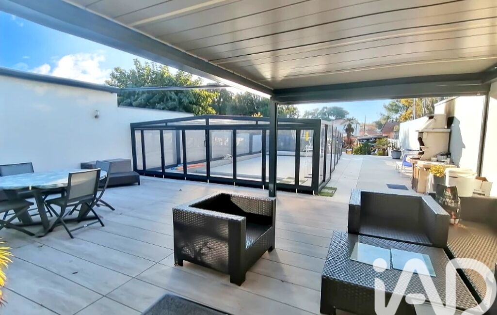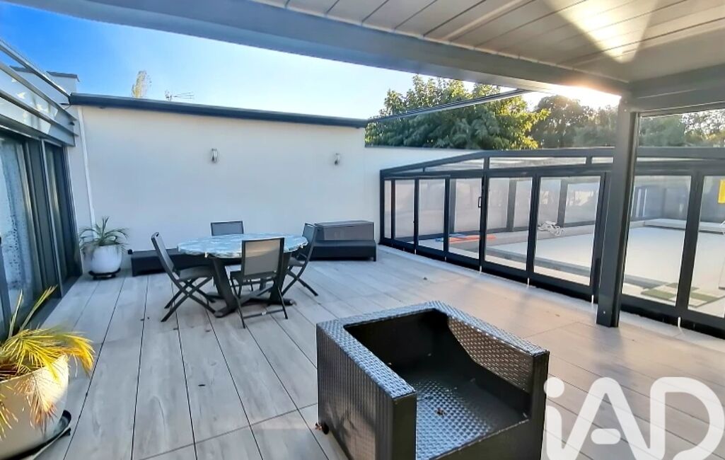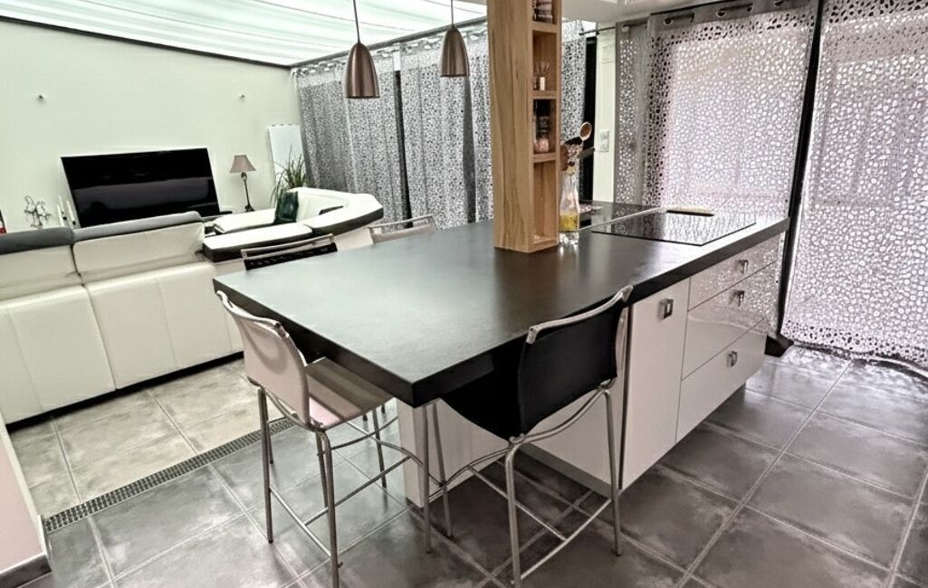 Depuis la cuisine, vous accédez à une belle et grande terrasse intimiste dont une partie est équipée d'une pergola, et l'autre d'un store banne électrique où vous pourrez profiter de moments conviviaux en famille ou entre ami, avec accès direct à la piscine.