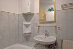En demi-niveau, le couloir avec placard distribue 3 chambres, une salle de bains avec baignoire, douche et WC.
