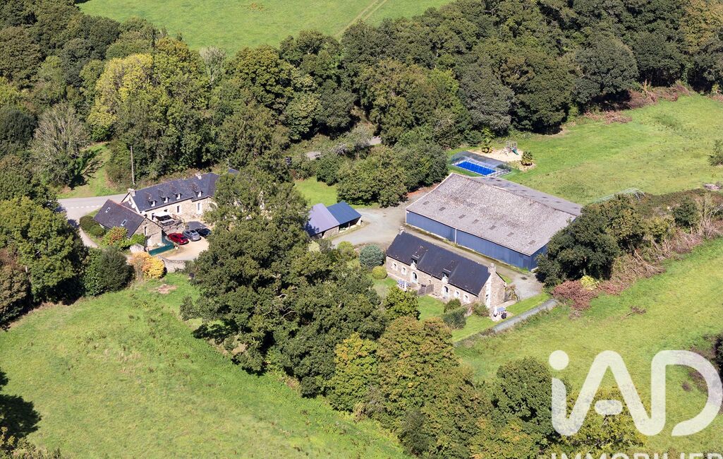iad France - Sarah Le Bolc'h vous propose: A 10 minutes de Carhaix-Plouguer , au bord du Canal de Nantes à Brest, emplacement privilégié pour ce domaine, composé de 4 maisons dont deux gîtes actuellement exploités, un Manoir de 1425 à rénover, un hangar de 850m2 avec 3 boxes à chevaux, une piscine chauffée couverte, un SPA extérieur et 7ha35 de terres agricoles libres de bail.