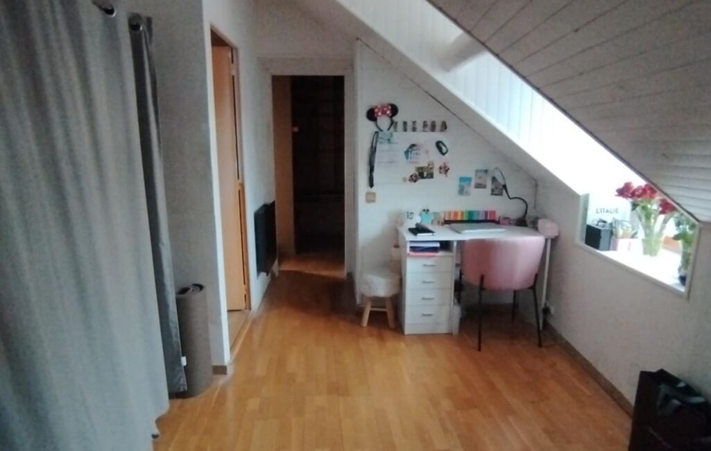 À l’étage : Un grand palier pouvant faire office de bureau dessert, deux chambres supplémentaires, un bureau fermé (ou chambre d’appoint), une salle de bains et WC indépendants