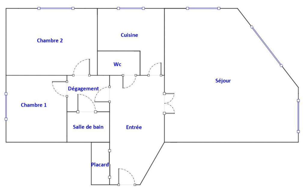 L'espace se compose d'une entrée, d'un séjour de 25m2 et d'une cuisine séparée, de 2 chambres avec placards intégrés, toilettes et salle de bain.