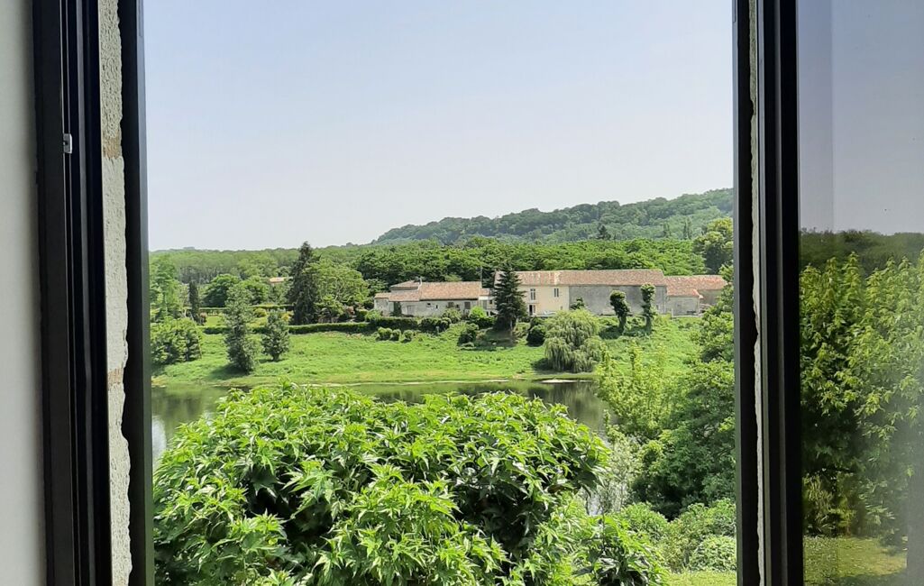 Côté est, la maison profite d'une vue dégagée sur l'eau et d'un accès privé à la Dordogne.