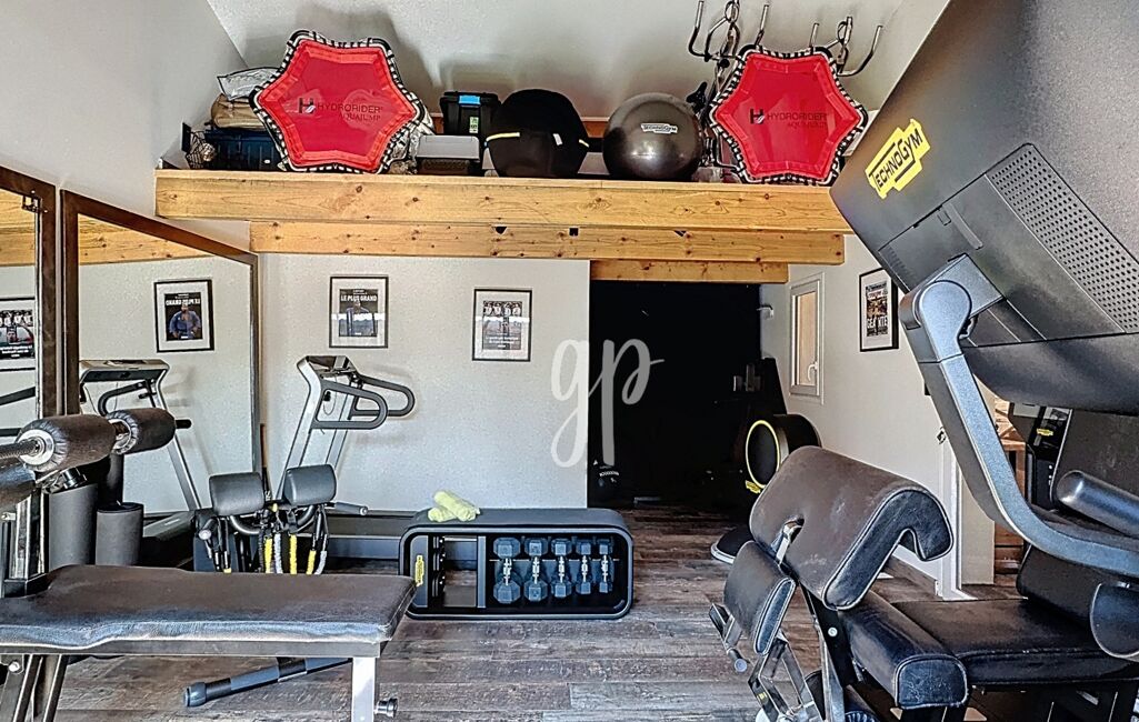 Un espace indépendant d'environ 30m², aménagé (ancien garage transformé en salle de sport avec salle d’eau et WC sanibroyeur) offre de multiples possibilités. Un abri jardin et plusieurs stationnements viennent parfaire les prestations.
