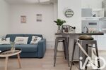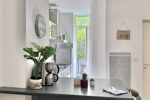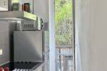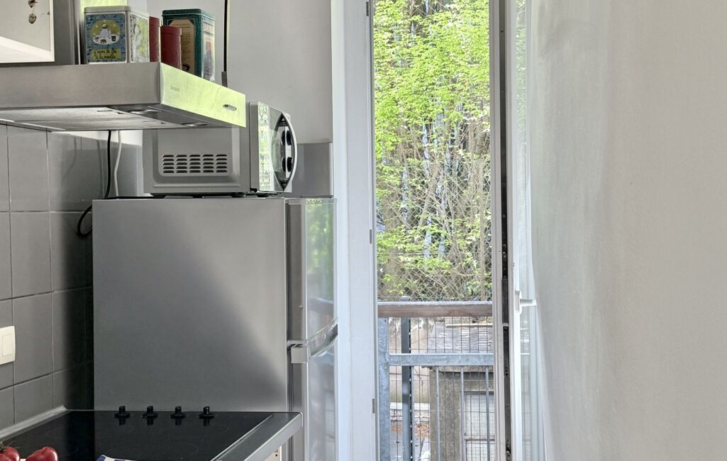 Pièce de vie : Un bel espace séjour avec cuisine moderne ouverte de 18 m2. La baie vitrée offre un accès direct à un balcon donnant sur une petite cour verdoyante au calme : un véritable havre de paix au cOEur des rues piétonnes. Le balcon, rare pour ce type d’appartement, offre un « bel espace » pour installer une table et des chaises et profiter de l’extérieur.