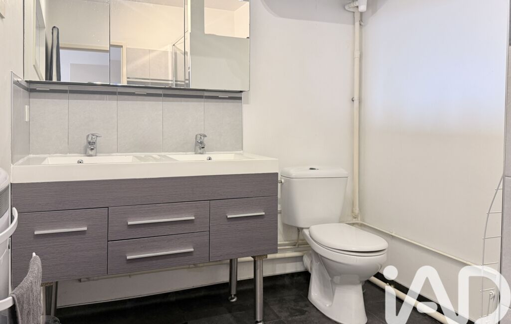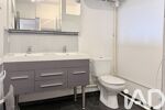 Une salle d'eau spacieuse et fonctionnelle avec double vasque, douche à l'italienne et WC.