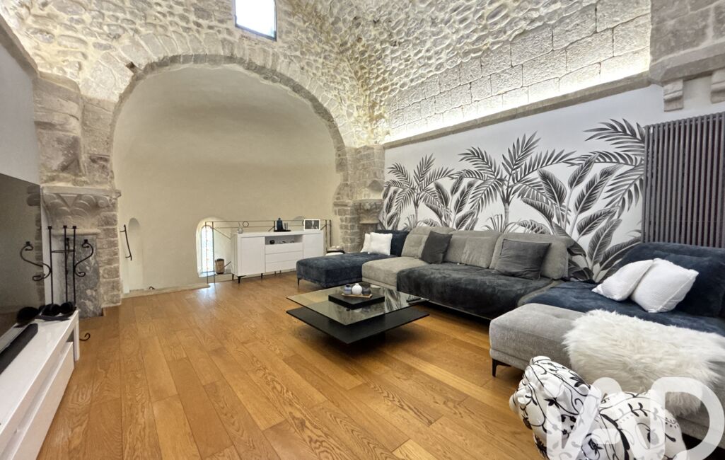 La pièce maîtresse : un salon cathédrale conçu dans l’ancienne chapelle, sublimé par 5 mètres de hauteur sous voûtes… un espace spectaculaire, unique, pensé comme une OEuvre d’art habitable.