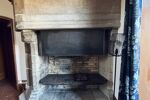 Dans cette salle à manger, une cheminée majestueuse en pierres de taille, sublimée par un manteau travaillé, vient magnifier l’espace et renforcer la noblesse des lieux.