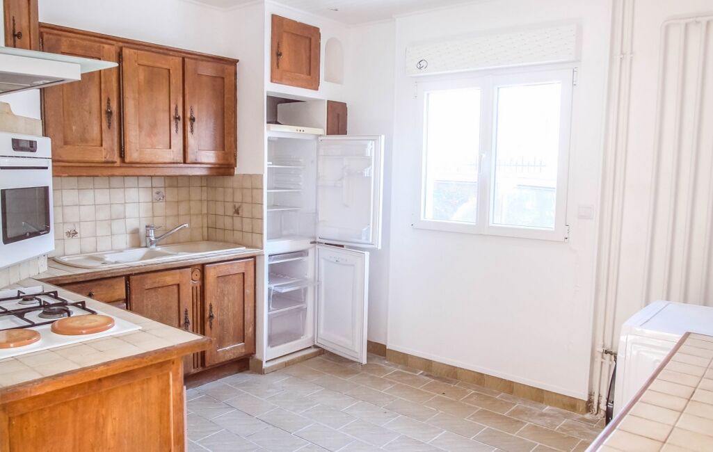 La seconde 3 pièces : entrée, séjour, cuisine à amenagée et équipée ouverte, salle de bains + Toilette, et 2 chambres en enfilade, sous sol total