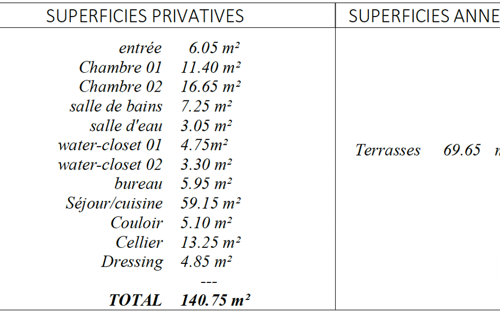 - Surface terrasse : 69.65 m²
