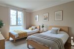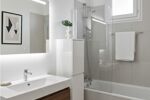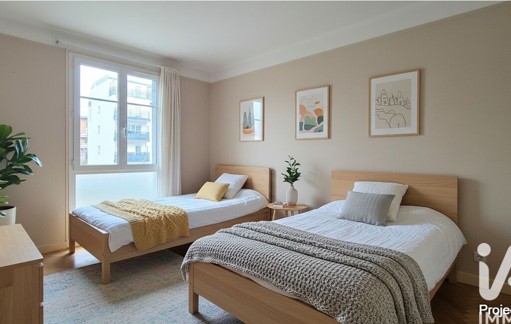 Il dispose également de deux chambres avec placards de 10,99 et 12,05 m², dont une s'ouvrant également sur le balcon, d'une salle de bains avec fenêtre et de toilettes séparées.