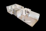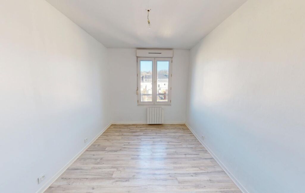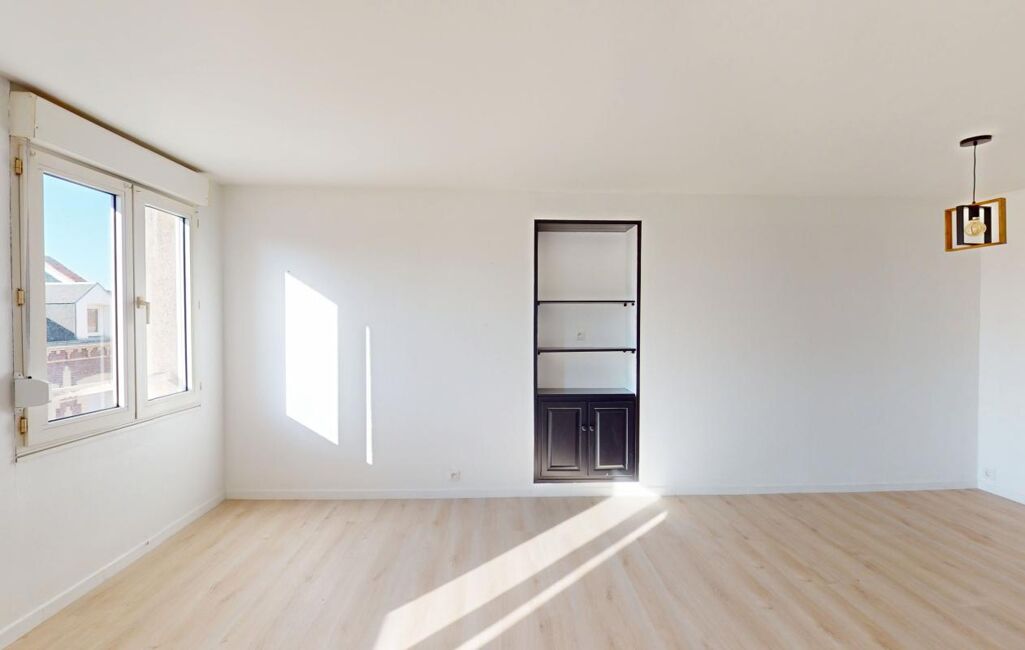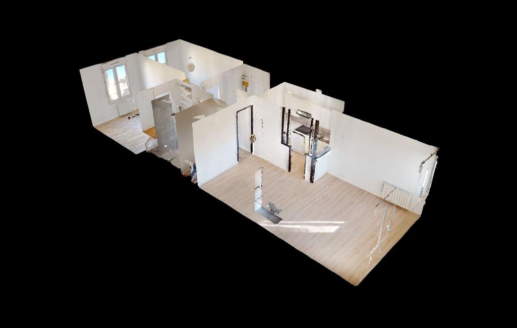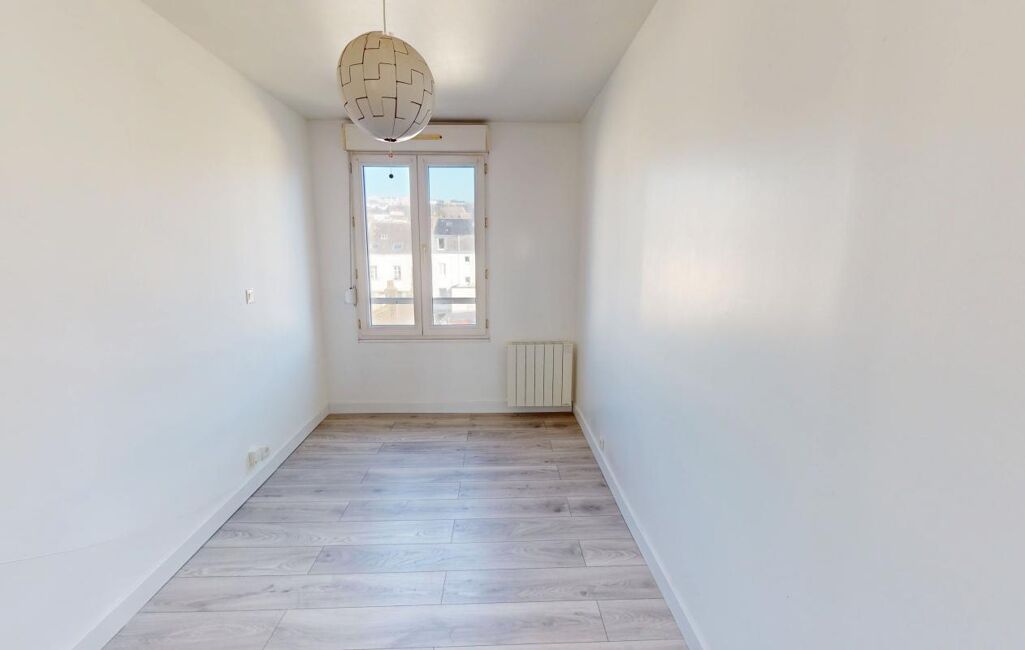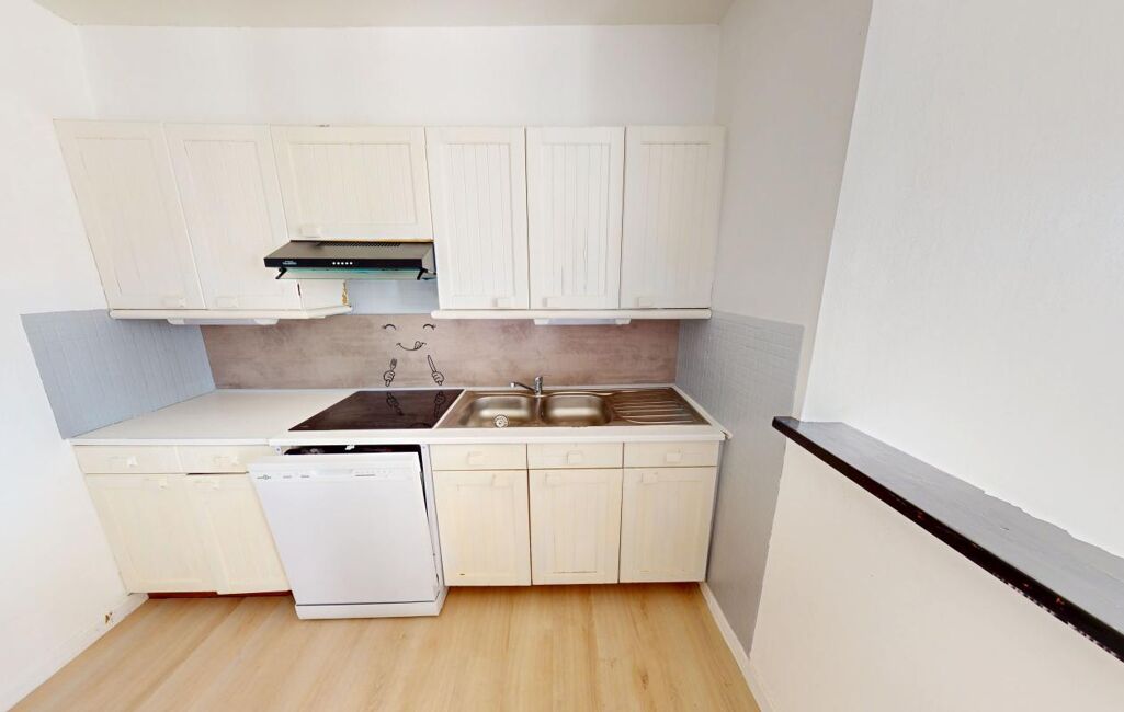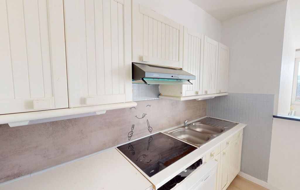 Un appartement de type F3 de 54,35m2 situé au 3ème étage sans ascenseur comprenant une entrée, un séjour, une cuisine aménagée et équipée ouverte sur séjour, une salle de bains, deux chambres et un wc.