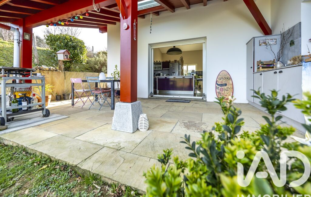 iad France - Philippine Lom vous propose: Nichée sur les hauteurs de Souraïde, à seulement 5 minutes du bourg et à 20 minutes de Bayonne et Saint-Jean-de-Luz, cette maison de style néo-basque de 120 m² édifiée en 2010 offre un cadre de vie privilégié, au calme et en pleine nature, sur un terrain de plus de 1 100 m².