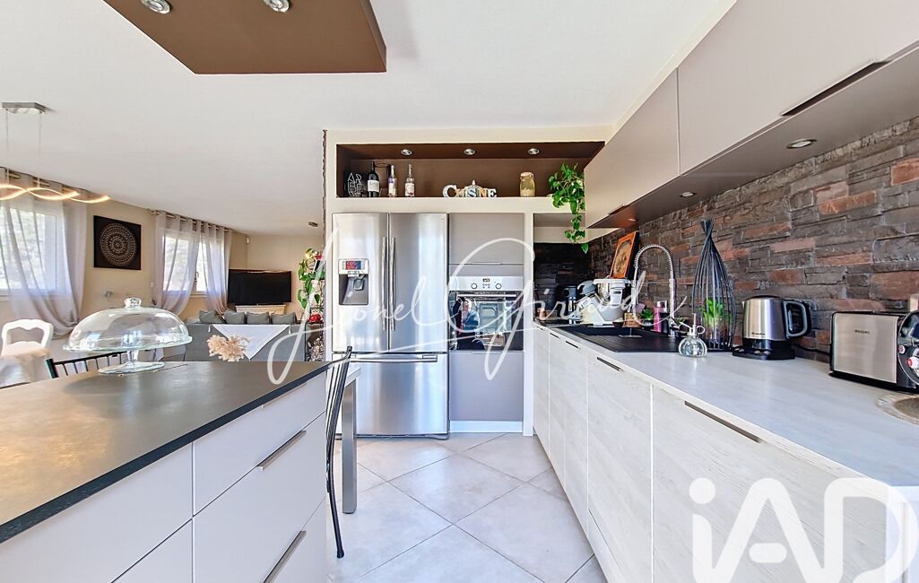 Vous entrez sur un hall de 4,86m² agréable et lumineux qui vous ouvre vers une belle pièce de vie ouverte sur la cuisine équipée et aménagée de 50m² environ avec 2 accès terrasse de 27,45m² aménagée, arborée et fleurit.