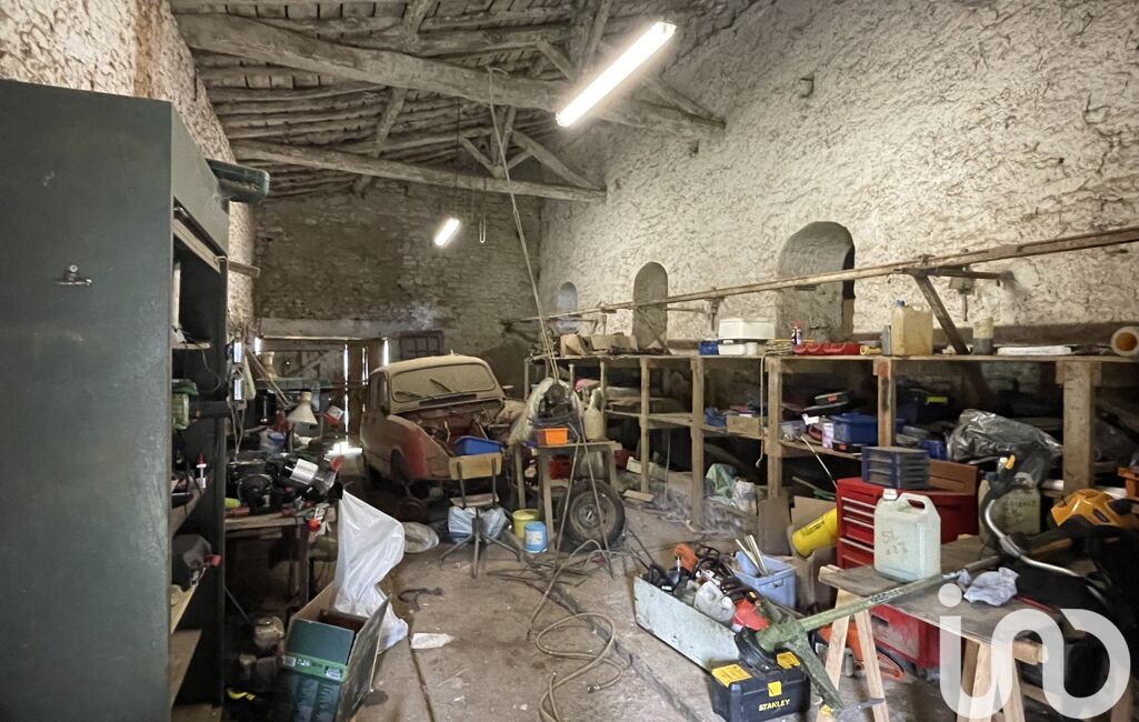 A l’entrée de la propriété, une grange en pierre de 93 m2 en 3 parties : 1 garage ouvert de 22 m2, une pièce de 20 m2 et une de 51 m2.