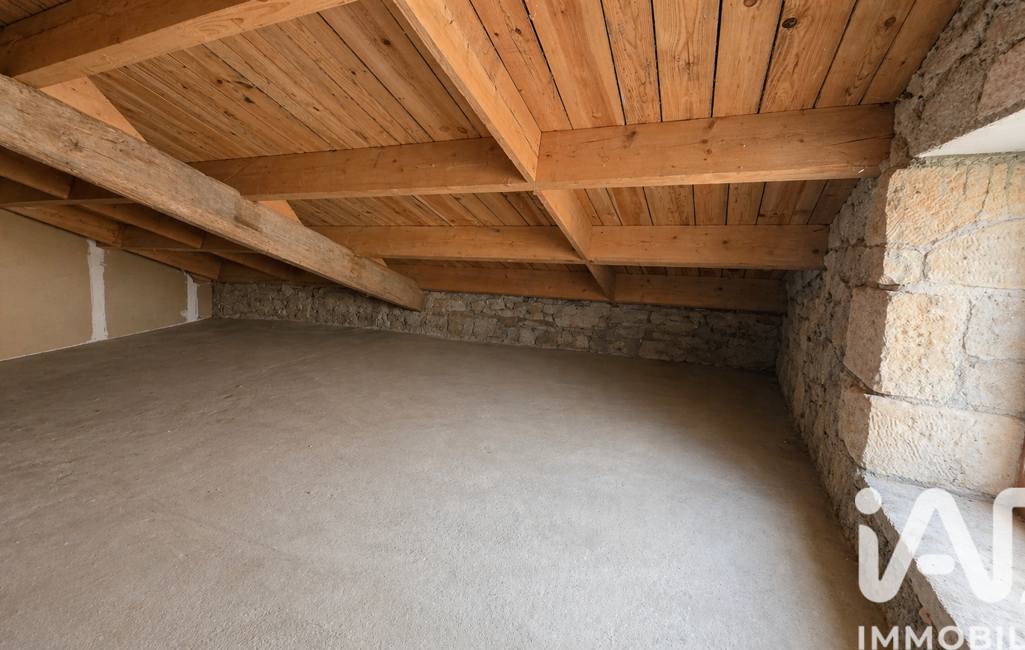 À l’étage, un dégagement dessert deux belles chambres de presque 17m² chacune avec poutres apparentes, un bureau à rénover, un WC indépendant et un grenier mansardé, parfait pour du stockage.