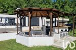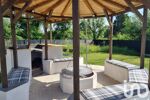 Espace détente aménagé : coin brasero, barbecue avec plan de travail extérieur