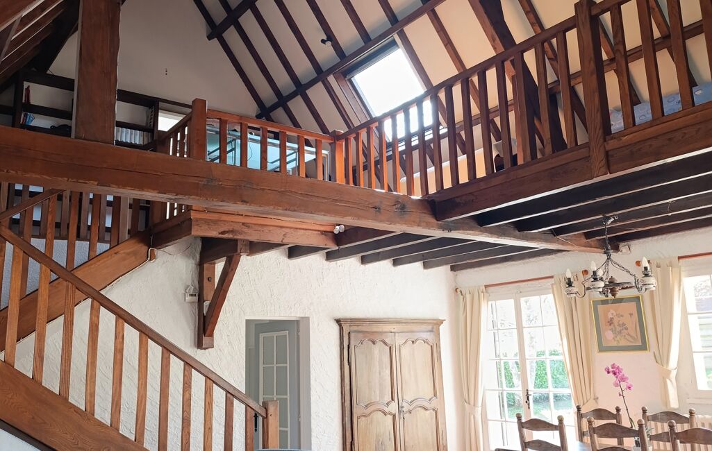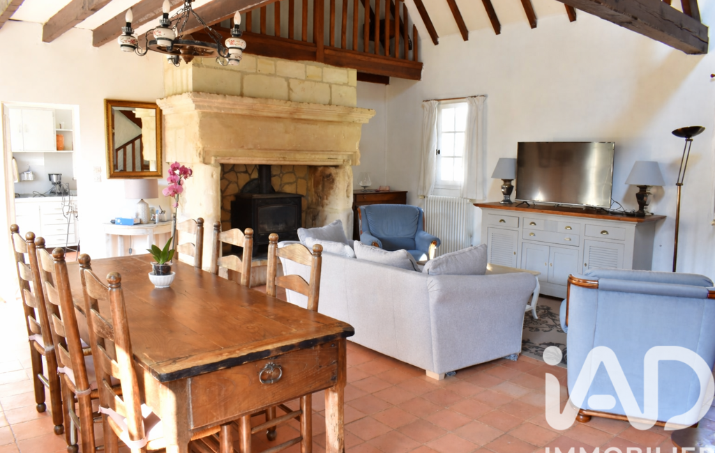 Cette maison d'environ 151 m2 sur un terrain clos d'environ 1200 m2 saura vous séduire de par son cachet et ses matériaux nobles, une charpente assez exceptionnelle, des tomettes au sol, un cantou en pierre et une mezzanine en bois, le tout mis en valeur par la luminosité de l'exposition plein sud et des grandes portes fenêtres à petits carreaux. Au RDC se trouve un salon/salle à manger, une cuisine avec arrière cuisine/buanderie, 2 chambres, une salle de bain avec baignoire et cabine de douche balnéo et des WC indépendants. A l'étage une grande mezzanine ouverte qui dessert 2 chambres, une salle d'eau et des WC indépendants.