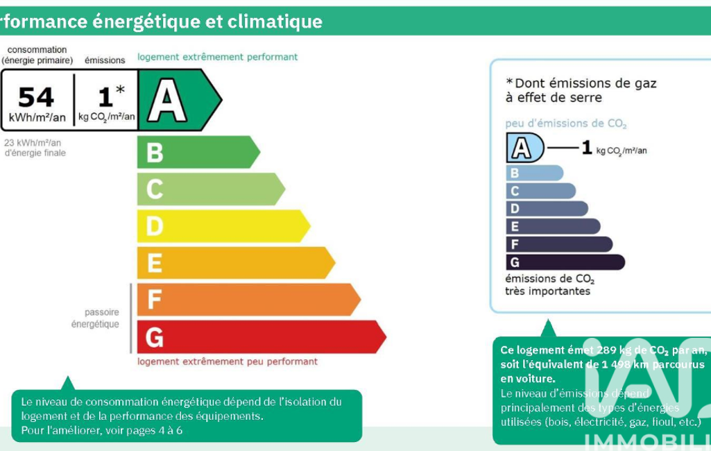 Information d'affichage énergétique sur ce bien : classe ENERGIE A indice 54 et classe CLIMAT A indice 1. Les informations sur les risques auxquels ce bien est exposé, y compris l'obligation légale de débroussaillement, sont disponibles sur le site Géorisques : http://www.georisques.gouv.fr.