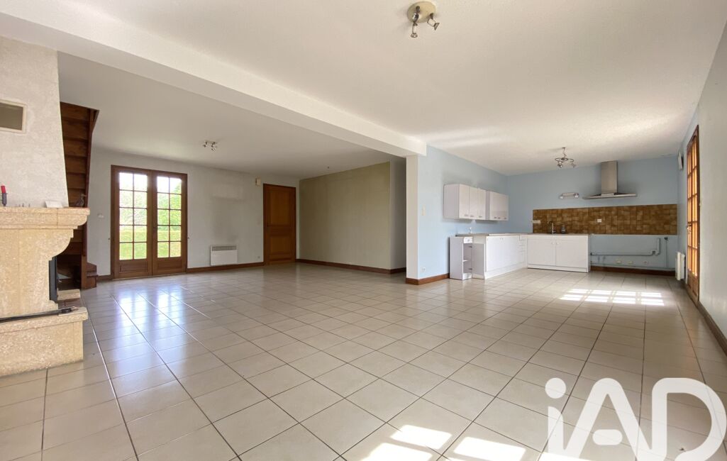 L'entrée mène sur la grande et lumineuse pièce de vie agrémentée de son insert à bois. La cuisine ouverte et fonctionnelle est à aménagée.