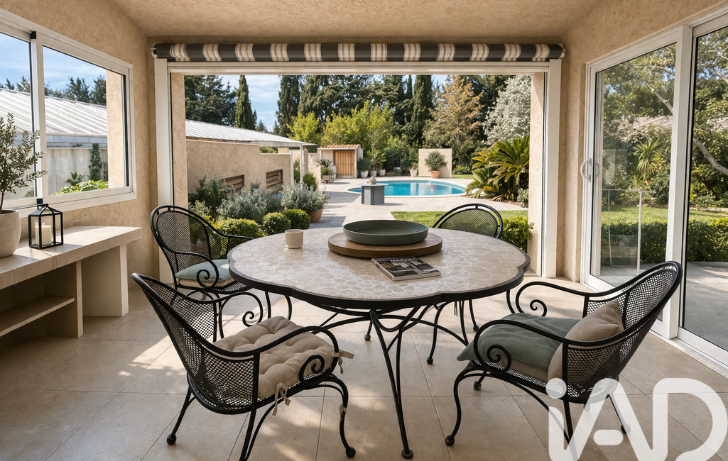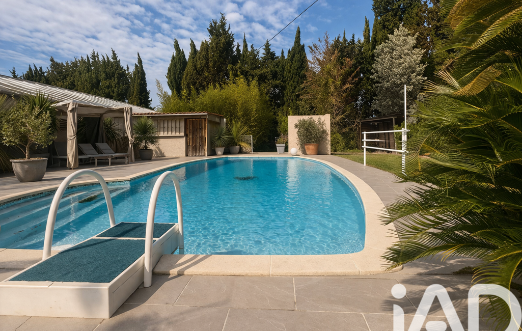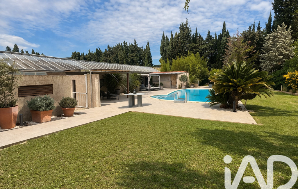iad France - Marc Pesalovo vous propose: Pézilla la rivière : Villa d'exception T9 des années 90 - 230 m2 habitables - 5 chambres- Parcelle de l'habitat 3000 m2 - Lieu d'agrément ( anciennes serres de 3300m2 ) - Hangar de 88m2 - Parcelle totale 6300 m2.