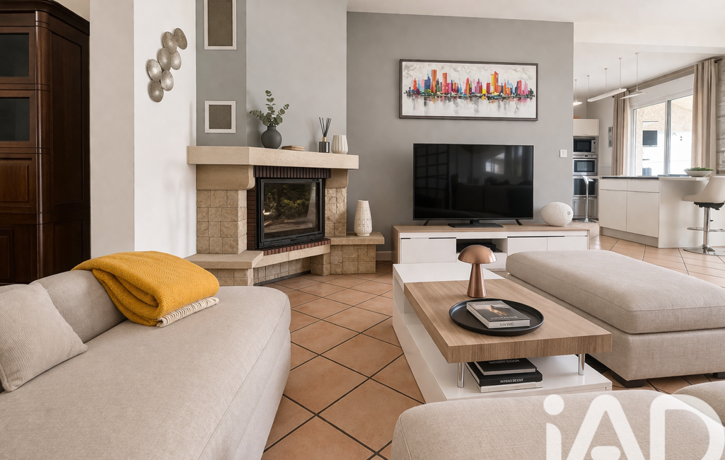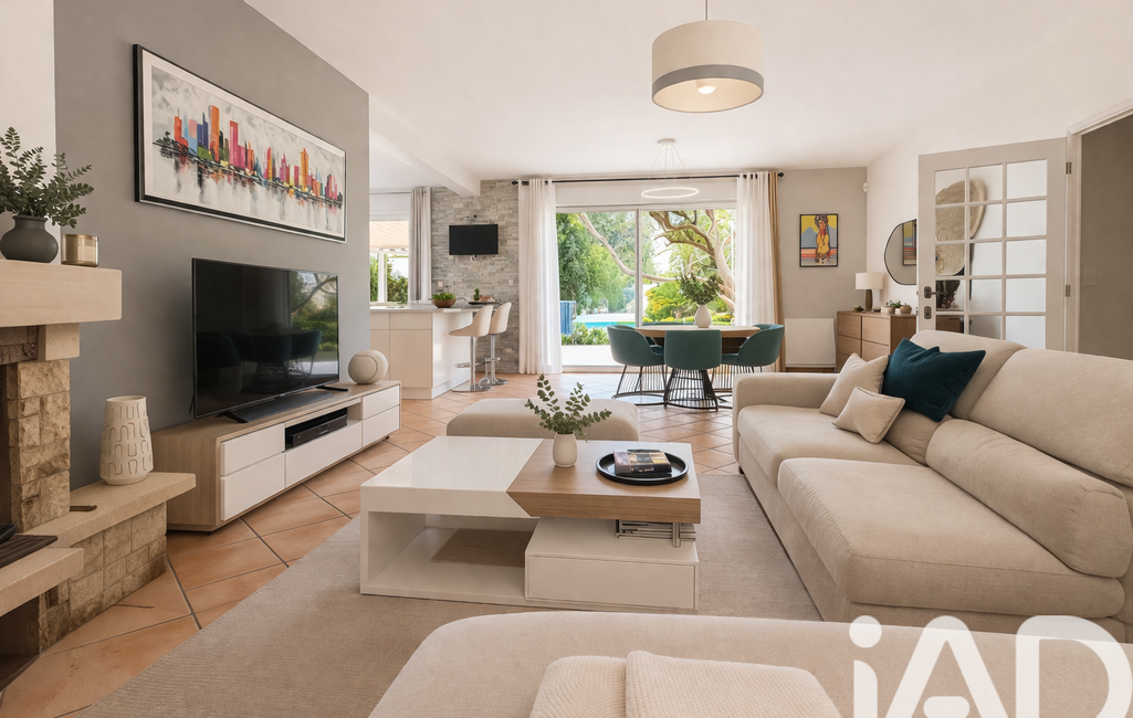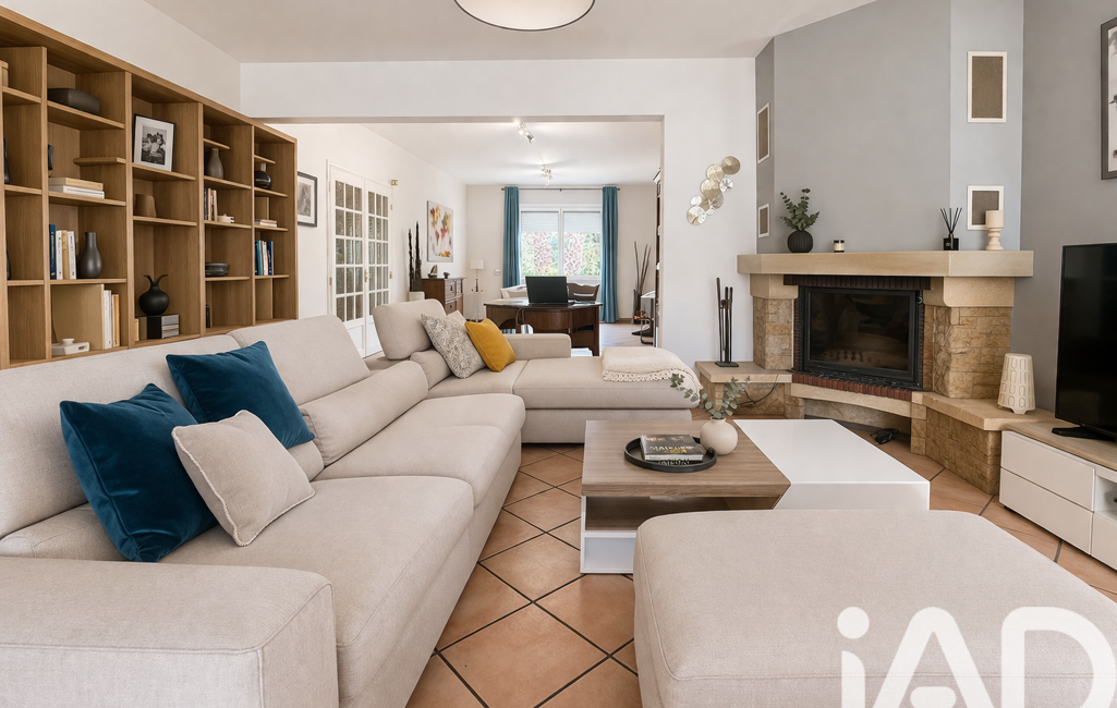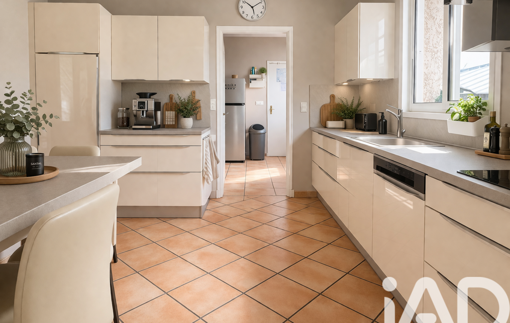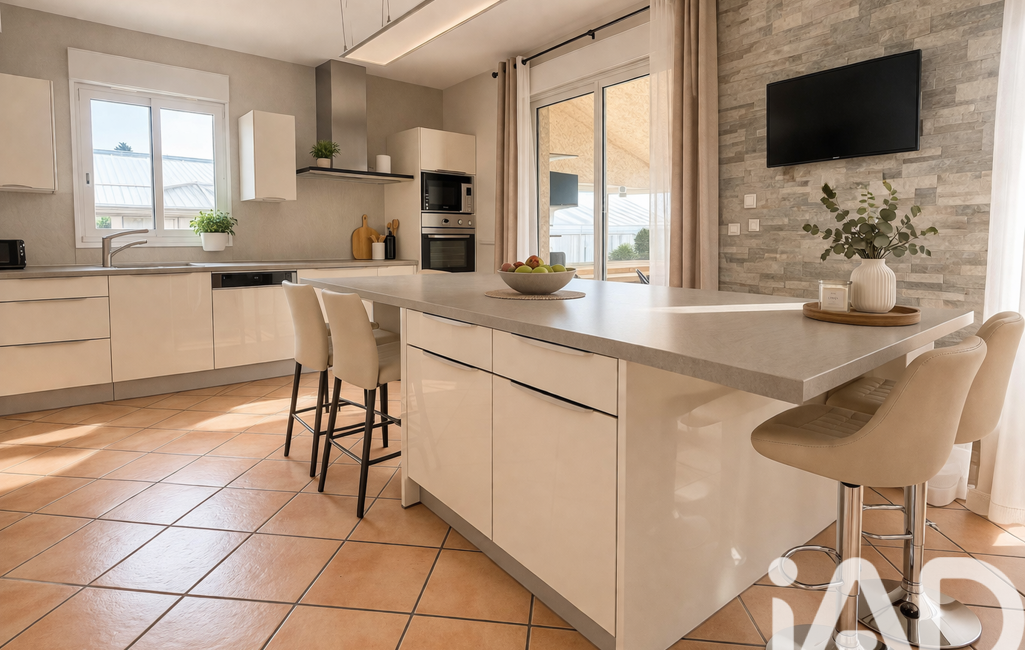 Le bien dispose d'un rez de chaussée avec un immense séjour salon salle à manger , une cuisine attenante toute équipée , une arrière cuisine , un bureau , un grand garage de 30m2.