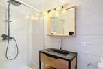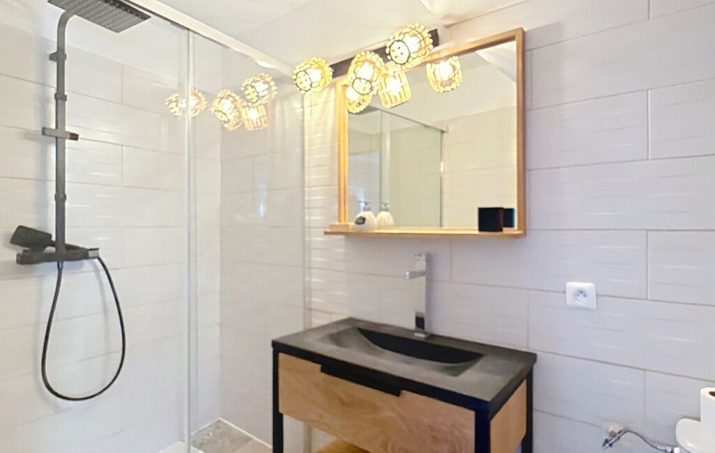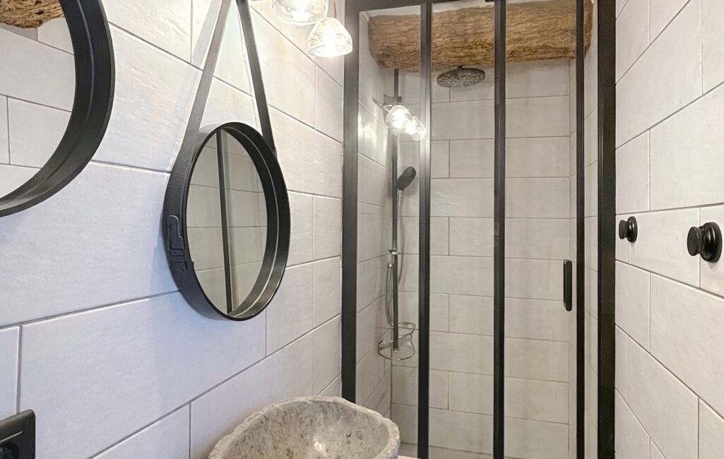 La maison dispose également d’un appartement duplex indépendant d’environ 46 m², un atout rare et recherché. Accessible depuis l’intérieur ou par un élégant escalier extérieur en pierres de taille, il offre un séjour, une cuisine avec coin repas, une salle d’eau avec WC, et à l’étage, une suite parentale avec salle d’eau et WC.