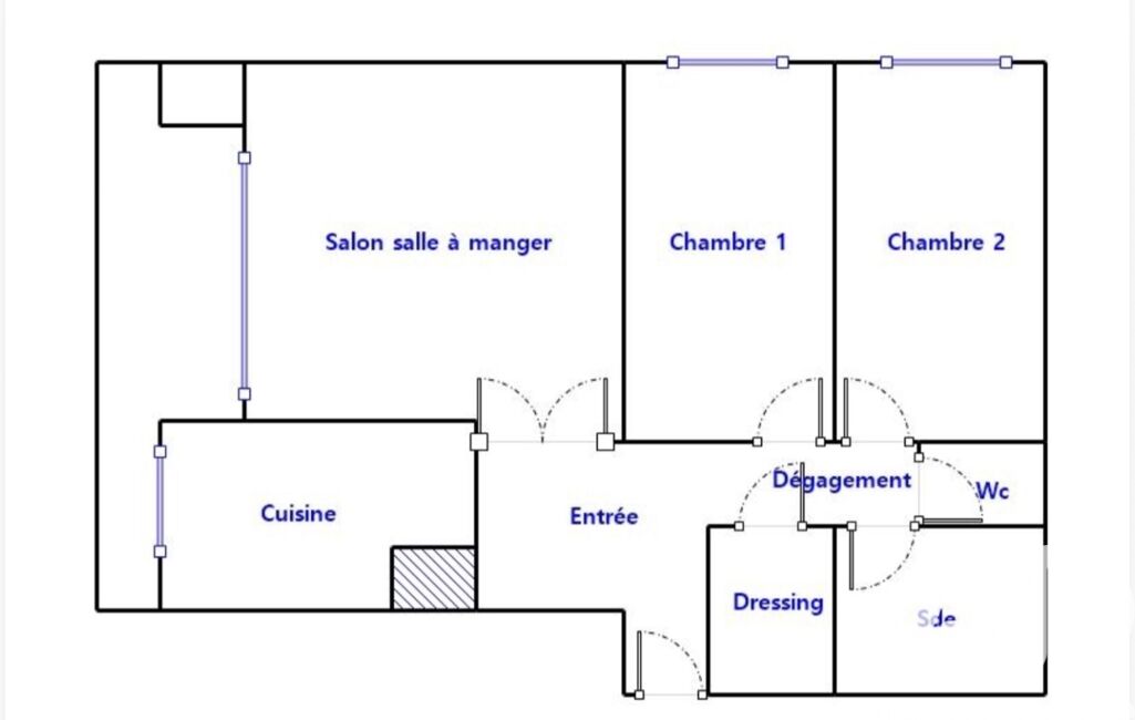Il est composé d'une entrée, double séjour/salle à manger de 21m2 environ avec un grand balcon sans vis-à-vis avec vue sur le parc/stade, cuisine séparée aménagée et équipée (possibilité d’ouverture), 2 chambres de 11 m2, une grande loggia avec portes fenêtres sur séjour, cuisine et chambre, salle d’eau, WC et dressing indépendants.