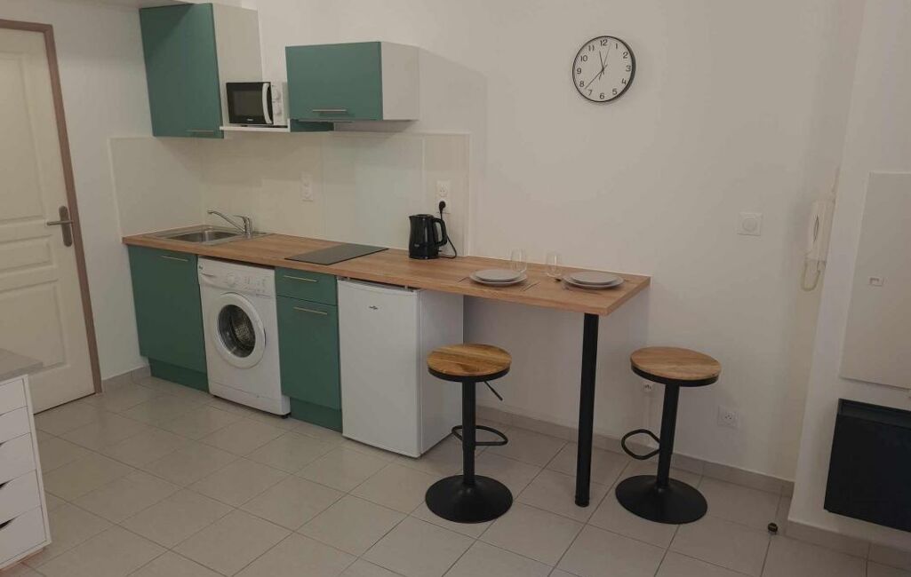 HOTEL DE VILLE, 114 Boulevard de Strasbourg, au Rez-de-Chaussée sur cour, studio meublé d'une surface de 19,91 m² comprenant une cuisine ouverte, aménagée et équipée sur la pièce de vie, un dégagement avec placard et une salle de douches avec wc.