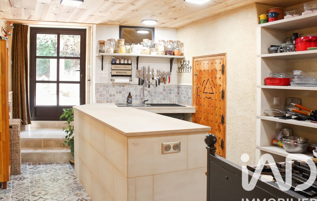- une cuisine maçonnée avec plan de travail en pierre traitée de 11 m2.