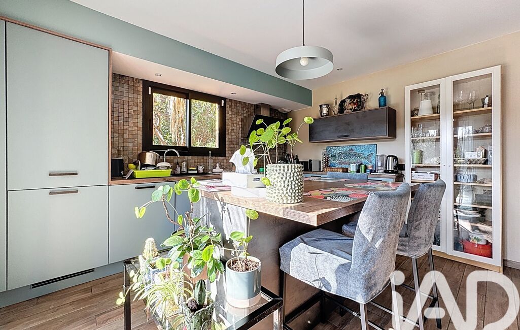 La maison offre une belle pièce de vie d’environ 45 m², largement ouverte sur l’extérieur, une cuisine aménagée et équipée avec cellier, ainsi que quatre chambres, dont une suite avec salle d’eau et dressing. Climatisation gainable, huisseries aluminium double vitrage et garage complètent l’ensemble.
