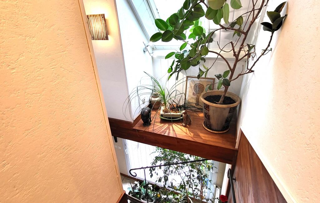 Cette maison de 146m2 répartis sur 3 niveaux, agrandie et rénovée en 1992 puis en 1997, est érigée sur un terrain de 248m2. Elle propose en rez-de-chaussée surélevé une entrée, une cuisine séparée et un bel espace salon/salle à manger de 50m2 très lumineux grâce à une exposition plein Sud. Cet espace est prolongé par une terrasse de 20m2 surplombant un agréable jardin paysager à l’abri des regards. Un escalier design mène au premier étage où l’on trouve deux chambres chaleureuses mansardées de 13.5m2 et 10m2 (cette dernière ayant en plus un couchage en mezzanine), une salle de bain avec baignoire et douche, un WC séparé. Le rez-de-jardin partiellement enterré comprend deux autres chambres de 11m2 chacune, un dressing, une salle d’eau, un WC séparé, une buanderie, une cave à vin et un garage boxé.