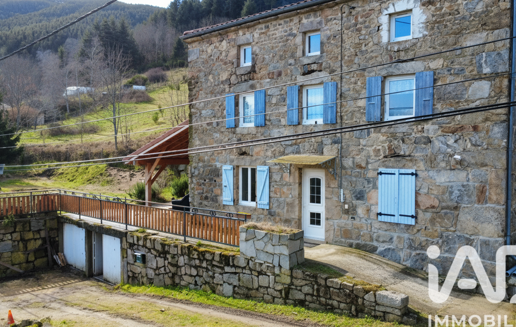 iad France - Rommy Dubief vous propose: SAINT JULIEN VOCANCE - Au cOEur d’un environnement calme et verdoyant à la campagne, cette authentique maison en pierre développe une superficie totale d’environ 175 m² et s’implante sur un magnifique terrain de 9 250 m² offrant une vue dégagée sur la nature environnante.