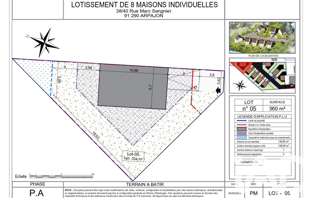 - Superficie terrain : 334 m²